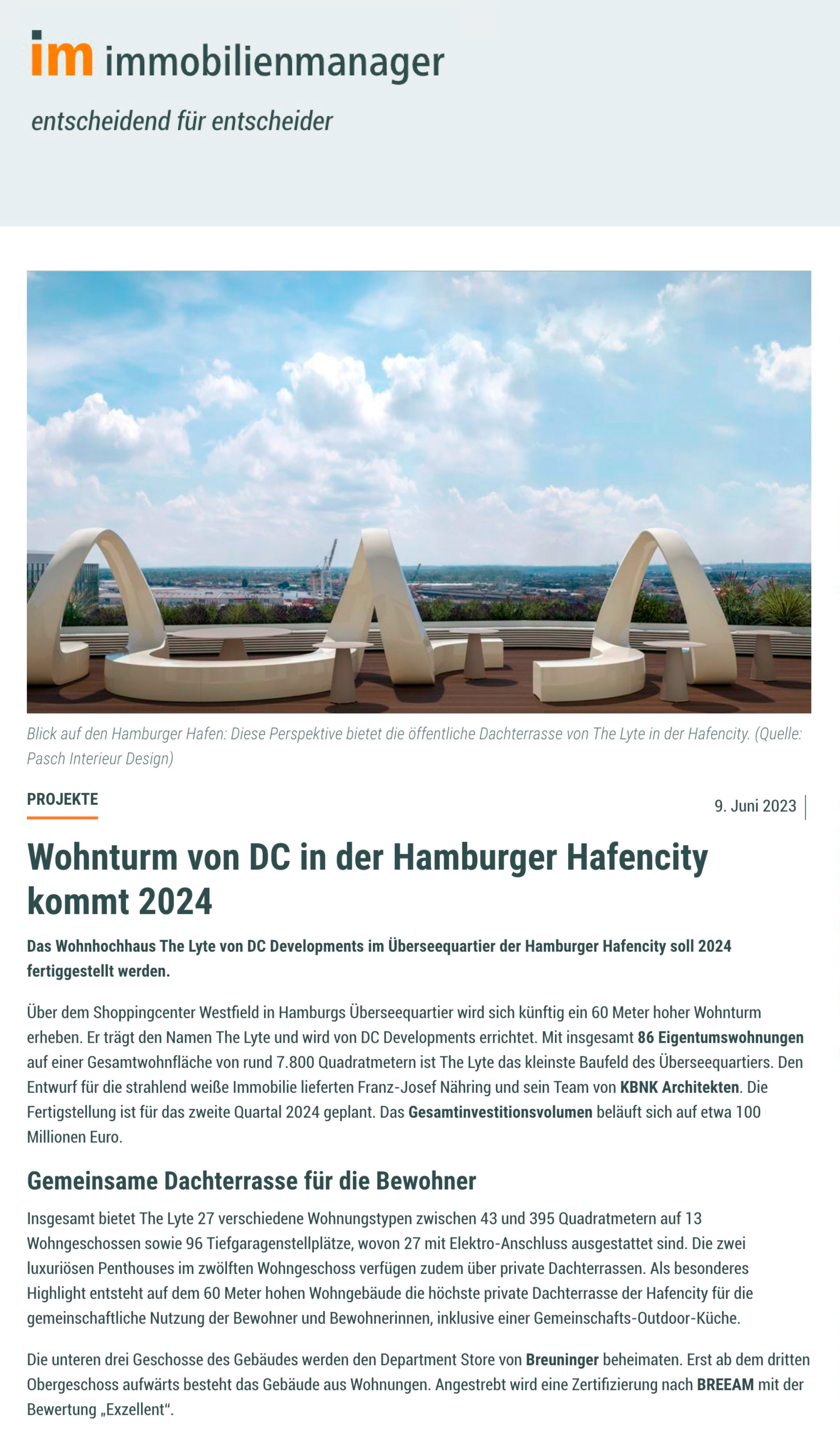IM immobilienmanager - entscheidend für entscheider - Artikel vom 09.06.2023