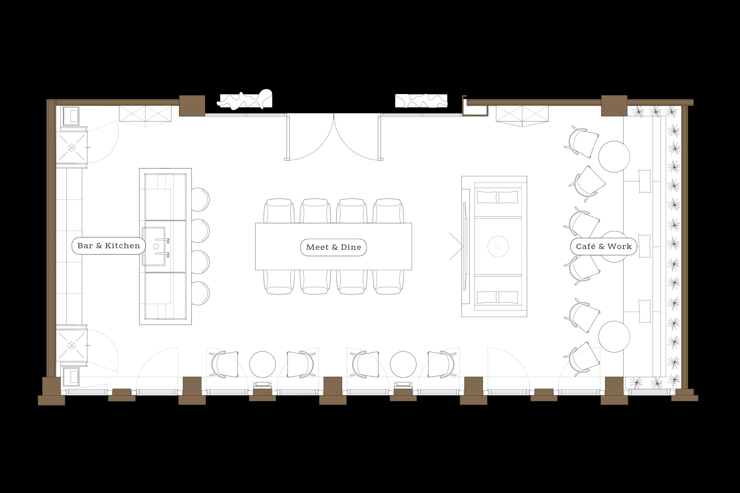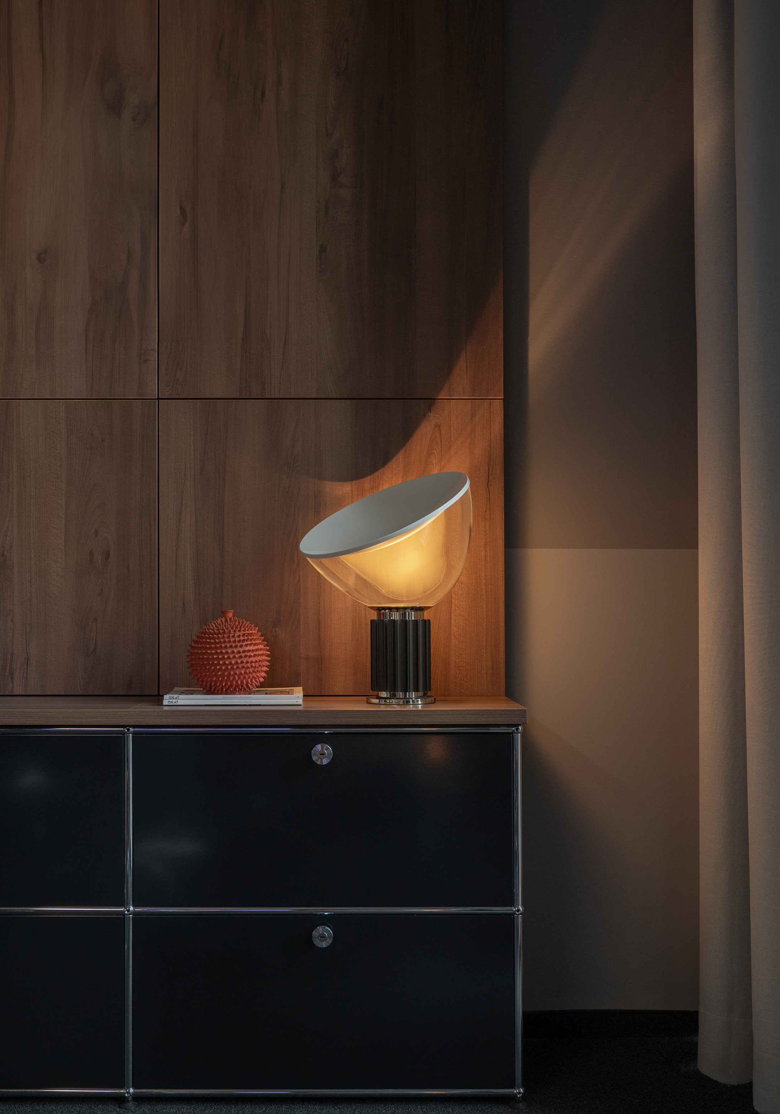 Ob kreatives Meeting oder informelles Mittagessen – der zentrale Raum wandelt sich meisterhaft. Der offene, vielseitige Bereich verbindet funktionale Klarheit mit entspannter Eleganz und adaptiert sich flexibel an wechselnde Nutzungen.